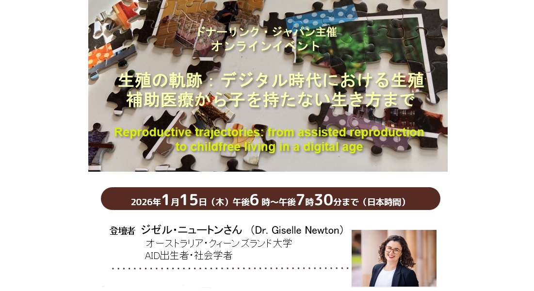 DLJ主催 12月13日(土)オンラインイベント 「提供精子で生まれるという経験―アイデンティティ、人間関係、平静を取り戻す」